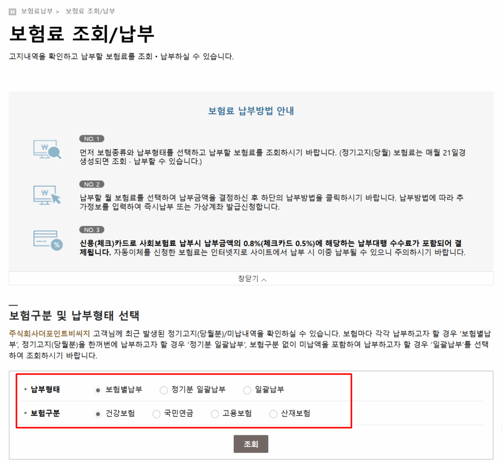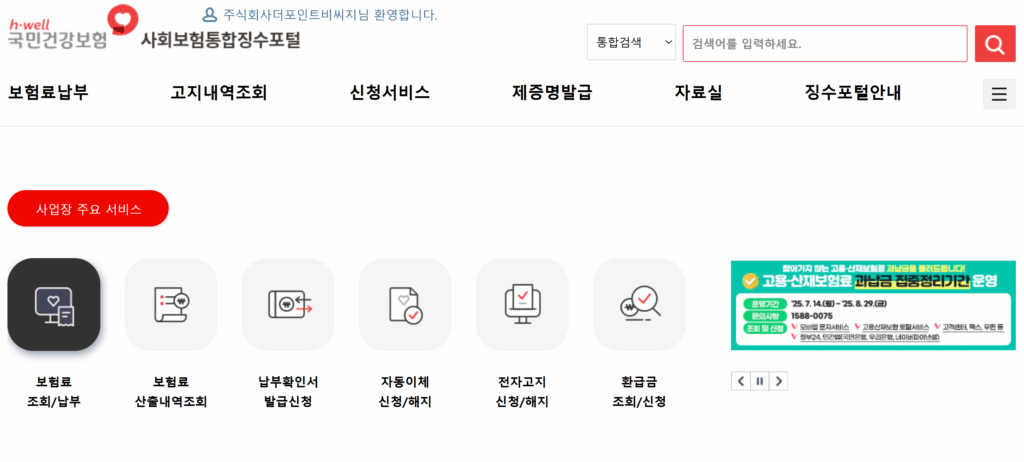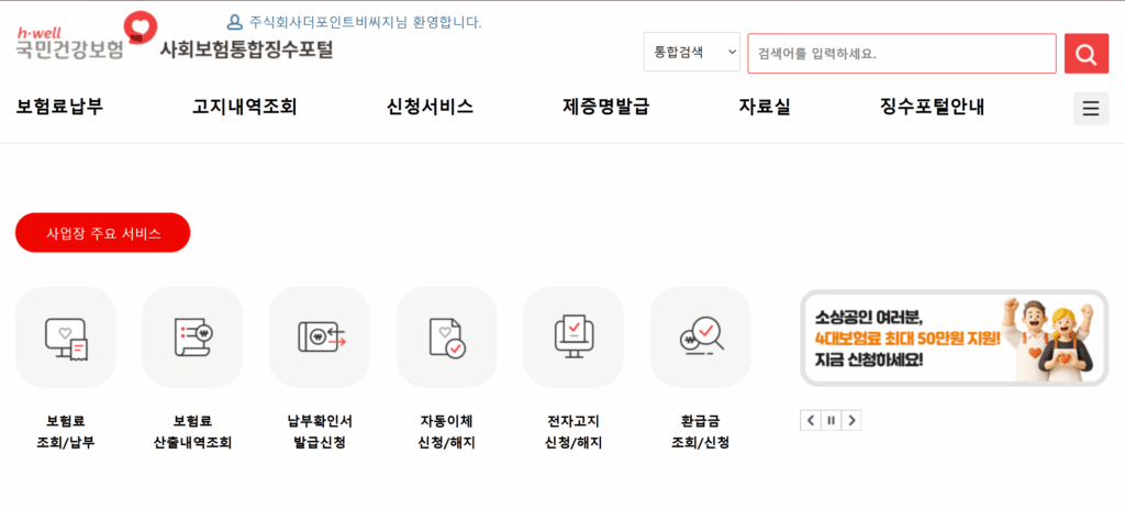 정확히는 사회보험징수포털, -사대보험징수포털로 해도 가